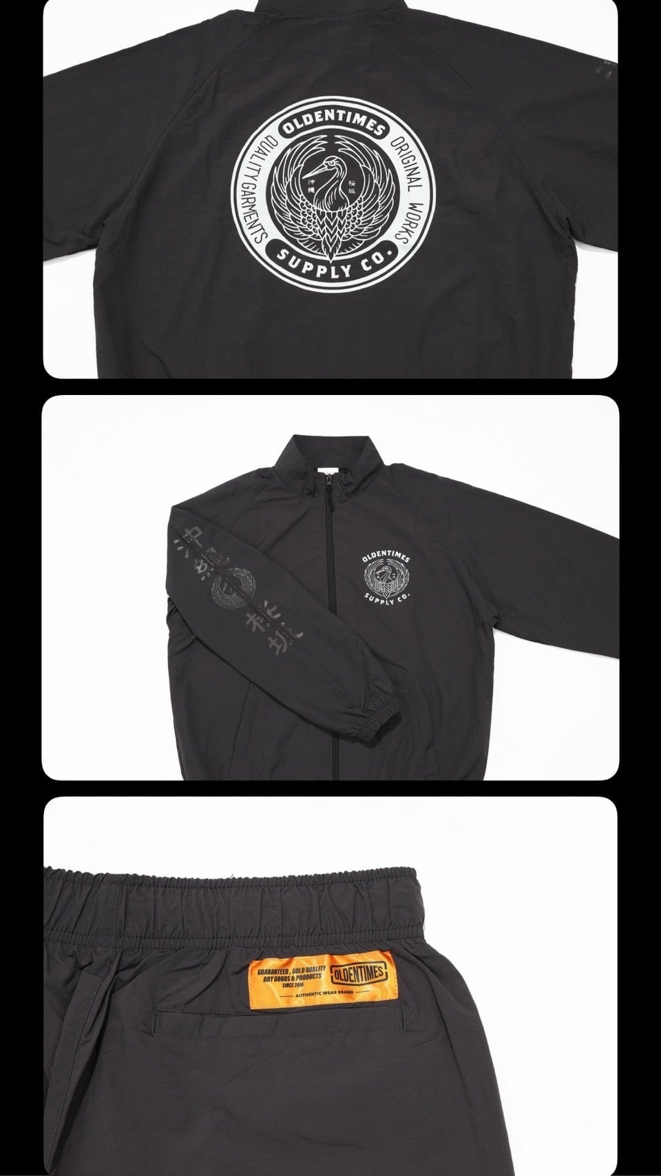 EMBLEM OF CRANE NYLON TRACK JACKET&LONG PANTS SET UP